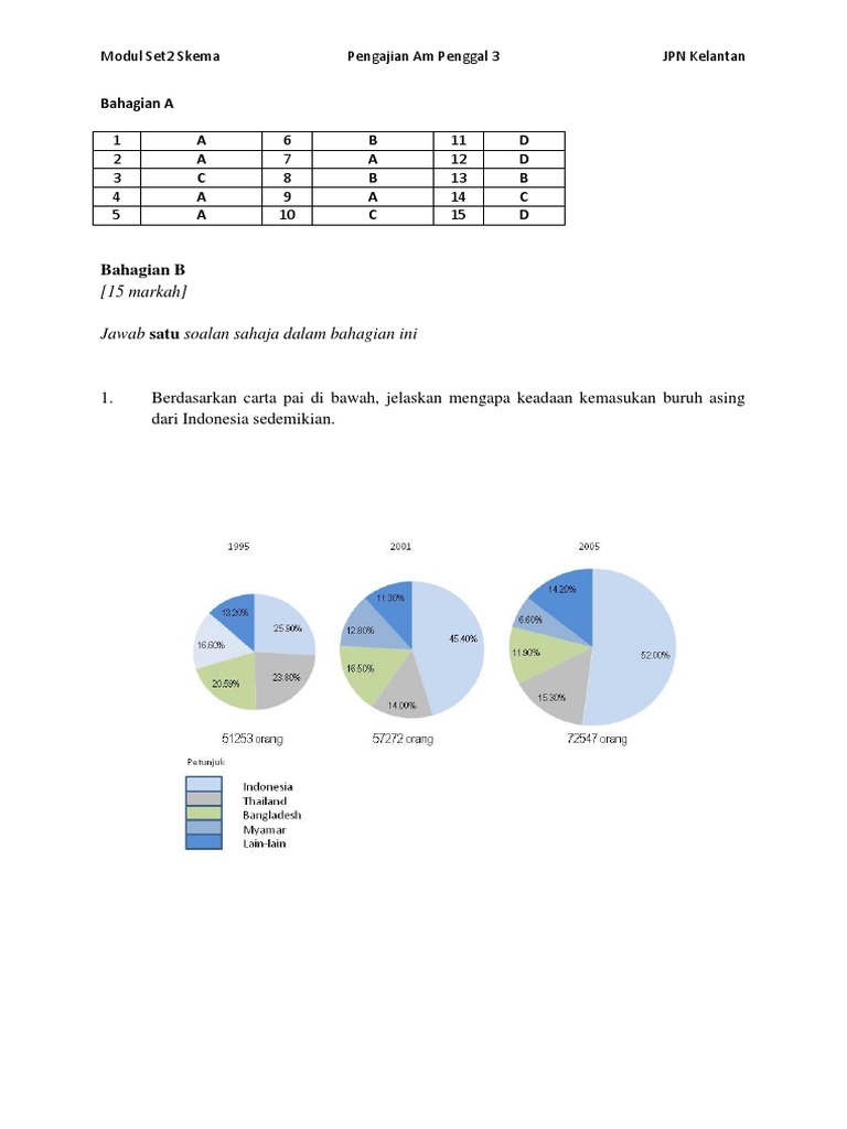 Skema Pengajian Am Penggal 3 JPN Kelantan Bahagian A 1 A 6 B 11 D 2 A 7 A 12 D 3 C 8 B 13 B 4 A 9 A 14 C 5 A 10 C 15 D Bahagian B 15 markah Jawab satu. Esei Pengajian Am Penggal 3 Stpm. Brunei 1984 Vietnam 1995 Kemboja Laos Myanmar 1999 3.